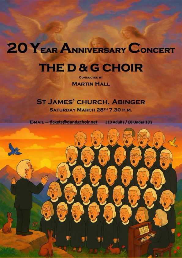 Abinger D & G Choir Events 2026 POSTPONED - St James's Church, Abinger Common For Tickets please e-mail tickets@dandgchoir.net